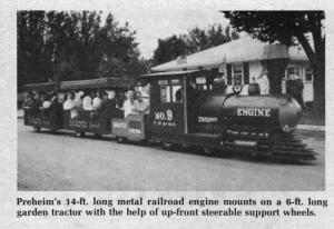 It all started several years ago when Preheim, a retired businessman. in Parker, S. Dak., built a "cardboard locomotive" to enter in the town's Centennial Celebration parade. "I cut out cardboard to resemble a locomotive and hung the pieces on the sides of a garden tractor, then hitched a couple coaster wagons behind for kids to ride in. It proved so popular that I decided to build a bigger and better train for future parades and celebrations."