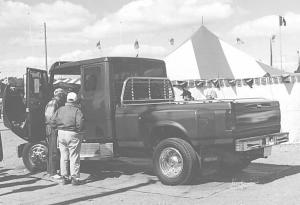 The custom designed pickup pictured has an 8,000 lb. front axle, 15,000 lb. rear axle, a 6 speed synchromesh transmission, a Cummins 5.9-liter model 210 diesel engine, and an extended cab. It's also available with a conventional cab and a 4-door model.