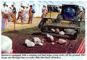 Buysse spent 3 days demonstrating the rock picker at the recent Farmfest farm show held near Redwood Falls, Minn. Crowds gathered around to watch him demonstrate how the bucket effortlessly picks up rocks ranging from 1 3/4 in. dia. up to as big as 30 in. dia.