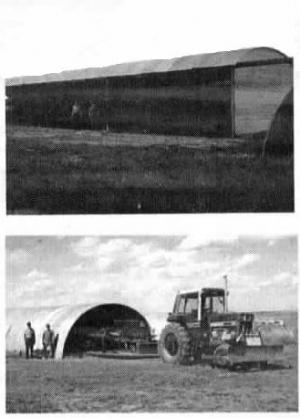 Horinek and his son, Kelvin, of Atwood, Kan., constructed their first grain bin building - a 22 by 50-ft. calving pen - 12 years ago. Since then they've put up other buildings, including a 100 by 23-ft. open-sided machine shed that they started just after Christmas last year and finished in April. It was built with sections of 18-ft. dia., 3,250-bu. bins. Some were his bins; others he bought.