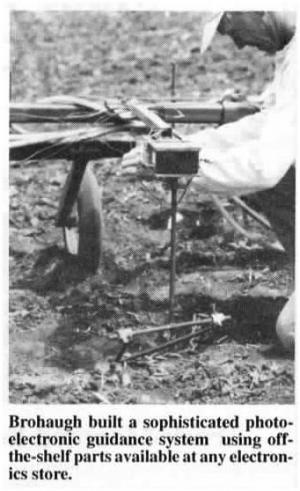 "My beet harvester came equipped with a mechanical row finder, but I was never re-ally satisfied with its performance. The mechanical switches have a tendency to wear out quickly and as they wear, their sensitivity changes and reaction time slows way down," says Keith Brohaugh, who built a sophisticated photo-electronic guidance system for his planter and sprayer.