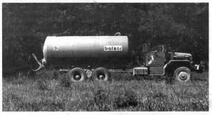 "A friend located a 5-ton 6-WD truck for us and we fitted it with a 3,100 gal. Balzer vacuum tank. Operation of the rig is very simple. All vacuum tank controls are in the cab except for the lever to change from vacuum to pressure, which is on the pump. Army trucks have several pto options so we were able to run the pump off a jackshaft that originally powered a winch. The truck also had air-overhydraulic brakes. We were able to tap into the air system and run all valves and actuators with air cylinders, eliminating the need to install a `wet kit'.