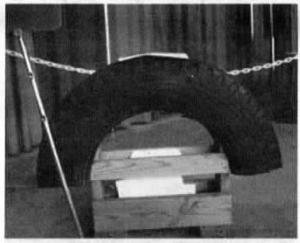 He builds a 2-ft. high stand out of treated lumber and then mounts an old well worn tire on top. Oldham says 24-in. truck tires seem to work best.