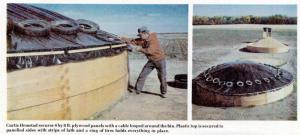Hemstad cautions that the grain must be dry before it is covered because the plastic forms an airtight seal and damp grain will heat. He recommends 14% moisture or lower. He has stored wheat for up to 8 months in one of these bins.