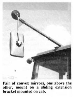 "The mirrors extend farther out from the cab than any other safety mirror and are completely vibration-free because they mount on the cab instead of the tractor to avoid motor vibration," says Steve Brownlee, inventor. "The top mirror is set high enough that you can look down into a wagon. It works great for topping wagons off. The 7 by 14-in. bottom mirror provides a large field of vision and works great for cultivating. Tilting both bottom mirrors downward lets you see three or four rows behind each rear tractor wheel."