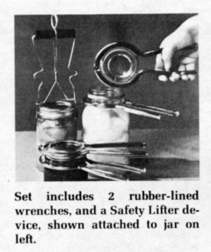 Cost of the complete canning set consisting of the two wrenches and the Safety Lock Lifter, including postage and handling, is $4.25.