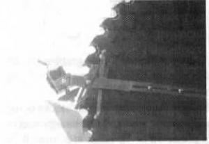 Blade Sharpener For Circular Saw Blades FARM SHOP Tools 19-5-30 Ivan Miller, Millersburg, Ohio: "Our new blade sharpener for circular saw blades is faster and easier to set up and more ac-curate than a jockey grinder. It can be used on carbide or regular teeth and is installed by threading a 1/4-in. bolt in mandrel or left hand sawmills. It's powered by a 12-volt motor or a 115 AC master mechanic drill. Sells for $239 without grinding stone."