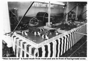 This "mini farmstead" is an exact replica of an actual 1930's Iowa farm and it draws big crowds wherever it's shown, according to Glen Foss, Jr., LaPorte City, Iowa, who takes it to various events around the Mid-west. The farmstead display mounts on a 30-ft. trailer and unfolds to a 15-ft. width.