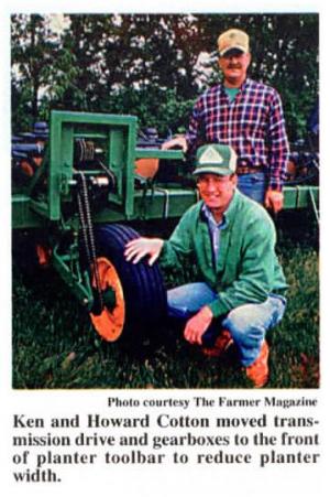 Cotton also modified the row markers so that they fold vertically instead of backward and aren't in the way as much, allowing him to plant closer to field edges and fence rows.