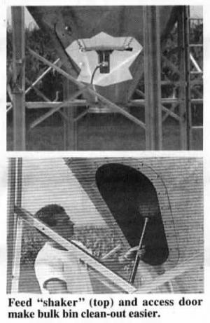 New Brock bins have another new feature - a hopper access door that makes bin clean-out easy. Located on the slant of the hopper, the 35 by 16 1/2-in. panel bolts to the inside of the hopper. Sells for $156 to $225, depending on bin size. Can be fitted to other bins.