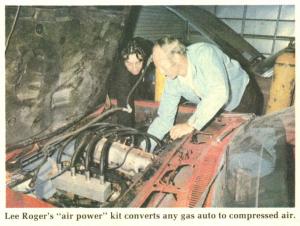 Now, thanks in part to a report by a freelance writer in "On Magazine", we've received further details and photos of the air-powered car invented and patented by Leroy K. "Lee" Rogers, a Ft. Meyers, Fla., building contractor. Rogers, who was inundated after early reports on his invention by crowds of reporters, manufacturers, potential investors and the just plain curious, has apparently gone "underground".