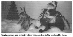 When the museum opens, visitors will be able to peer down into gopher holes to view the stuffed rodents posed in human activities, such as reading stories to the kids. There'll also be a replica of Torrington in earlier days with stuffed gophers dressed up as citizens.