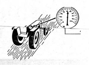 The scale consists of a dial, high pressure line and ball valve. It can be mounted at the operator's choice of location on the tractor. Using the tractor's hydraulic system, it's calibrated to read in 25-1b. increments.
