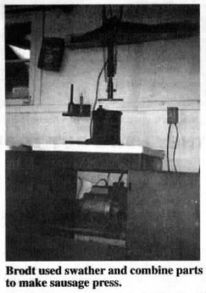 "I've made- 5OO or 6OO lbs of sausage with it since I built it a year ago," Brodt says. "Everything works great, except I need to reinforce the mounting bracket because pressing drier meat tends to bend it."