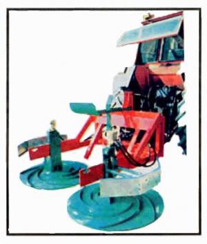 The unit both unrolls and shreds bales at the same time. It's equipped with two big spinner discs that cut into the bottom of the bale at an angle. They have a series of steel strips on top arranged in a spiral pattern. The discs turn outward, rotating the bale and slicing off straw which is then spread over a 12-ft. wide area. The unit can spread a bale in only 2 minutes.