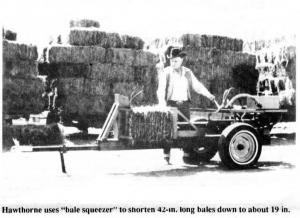 Hawthorne says he sells "bale squeeze" models compress 1 to 4 bales at a time for $1,200 to $3,400.