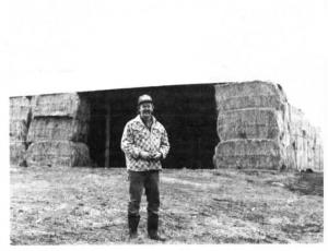 He started with a rock base foundation which lets water drain away from the bales. A ditch runs alongside to help handle spring runoff. Bales are stacked 3-high to make 12-ft. walls. One end of the building is sealed shut. The other end is partially open. Five 25-ft. treated wood poles are spaced evenly down the center of the shed to support the roof peak, .which is a 10-in. pipe welded together in 40-ft. lengths.