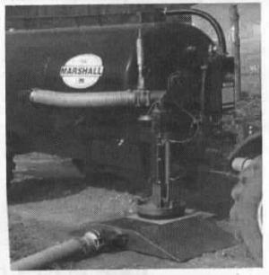 Hose from a pit or lagoon runs to a flat ramp with a hose fitting. There's a fill hole on top of the ramp. You drive over the ramp with the tractor and stop so a ram on the front corner of the slurry tank lines up with the fill hole. When the ram lowers, it creates an airtight seal thanks to a round rubber tire on the ram that seals against the top of the ramp. Then a hydraulic gate valve is opened and the tank is filled.