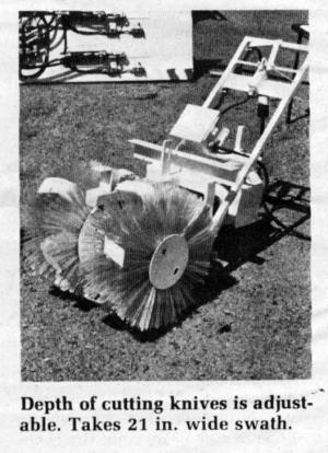 Built for tough jobs, the machine weighs 240 lbs. and runs on 240 volts A.C. The machine can also be used to sweep grain off concrete floors.