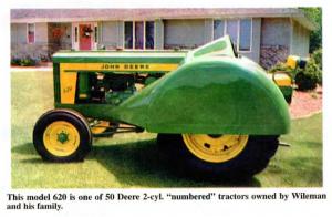 Some of the tractors are quite rare. They include a 1958 730 Hi-Cropper designed for working in rice and sugar cane. Only 78 were ever built. "They have been sold for as much as $20,000 in restored condition," says Wileman. His 1958 620 orchard model has sheet metal over the rear tires and steering wheel to keep the tractor from knocking apples off trees. Only 400 were ever built. "It's worth up to $25,000 in restored condition". He also owns a 1960 330, a small model that was often equipped with a belly mower and used by counties to mow township roads. Only 1,000 were ever built. Restored models are worth $10,000 to $15,000 apiece.