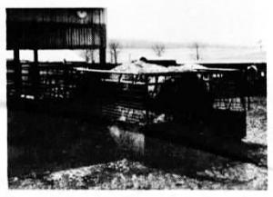 Round Bale Feeder HAY & FORAGE HARVESTING Bale Handling (5) 15-4-34 Your readers may be interested in my "limited access" round bale feeder. It's 16-ft. long and equipped with hinged hog panels that rest on top of the bale while cattle feed. When you want cattle to stop eating hay, you simply swing the panels down and secure them, forcing the cattle to go to a silage or concentrate feed bunk. Sells for $1,650. I also build a 14-ft. long feeder that works nicely when placed within a 14-ft. wide free-stall alley. I built a freestall barn and placed this feeder right in the middle of the barn. Sells for $1,300. I've also designed a "one-slope" feeder that can be used with open-front "Virginia-style" heifer bares, along fence-lines, or any other place where feeding and animal circulation space is limited. Sells for $750. All of my feeders have built-in floors and can be supplied with roofs. They're all built with a two-fence system to reduce hay waste. (Jonas Stoltzfus, RD 1, Box 196, Loysville, Penn. 17047 ph 717 536-3618).