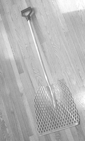 The aluminum shovel is about 1 in. deeper than a conventional shovel. You fill it about half full, then roll it back and forth to sift.