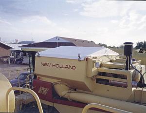 "It eliminates the need to crawl up onto the combine to put a tarp on or to shovel out wet grain. The cover rides up over a peak so it easily sheds rain. It works much better than using plastic tarps which can easily get blown off or torn because they don't fit tight."