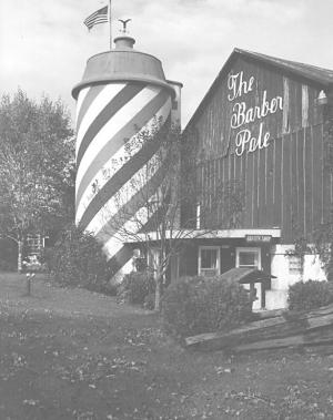Gumieny, who lives on a 6 1/2-acre hobby farm on the edge of town next to a prominent lake resort, set up his silo barber pole shop in 1976 - the year of the U.S. Bicentennial. The cement roof is painted blue and has an American flag flying over it at a height of 54 1/2 ft.