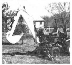 Mobile Backhoe TRACTORS Miscellaneous 14-1-30 We built this mobile backhoe from scratch. It mounts on its own wheels and can be pulled by a small garden tractor. Every piece was made out of sheet steel except for the hydraulic controls. It works as well as any commercial rig. (Clarence & Bruce Cole, 7 Fallon Dr., Westport, Mass. 02790)